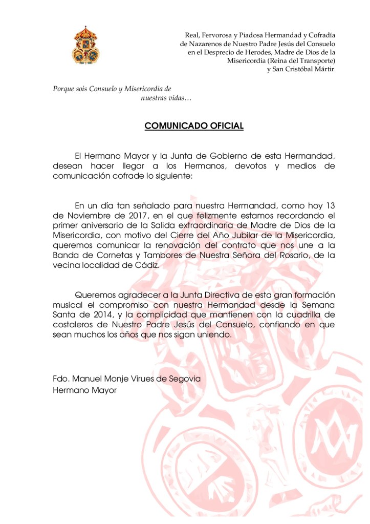 14 noviembre, 201710 abril, 2019 P.M. La Hermandad renueva el contrato con la Banda del Rosario de Cádiz Comparte esto:Tweet Compartir en WhatsApp (Se abre en una ventana nueva) WhatsApp Compartir en Telegram (Se abre en una ventana nueva) Telegram Imprimir (Se abre en una ventana nueva) Imprimir Email a link to a friend (Se abre en una ventana nueva) Correo electrónico Me gusta Cargando... Relacionado