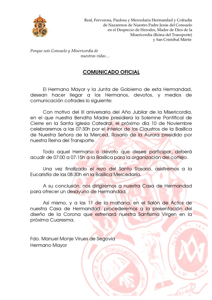 7 noviembre, 20197 noviembre, 2019 P.M. Recuerda acompañar a la Virgen el próximo domingo en Rosario de la Aurora Madre de Dios de la Misericordia, preparada para el Rosario de la Aurora Comparte esto:Tweet Compartir en WhatsApp (Se abre en una ventana nueva) WhatsApp Compartir en Telegram (Se abre en una ventana nueva) Telegram Imprimir (Se abre en una ventana nueva) Imprimir Email a link to a friend (Se abre en una ventana nueva) Correo electrónico Me gusta Cargando... Relacionado