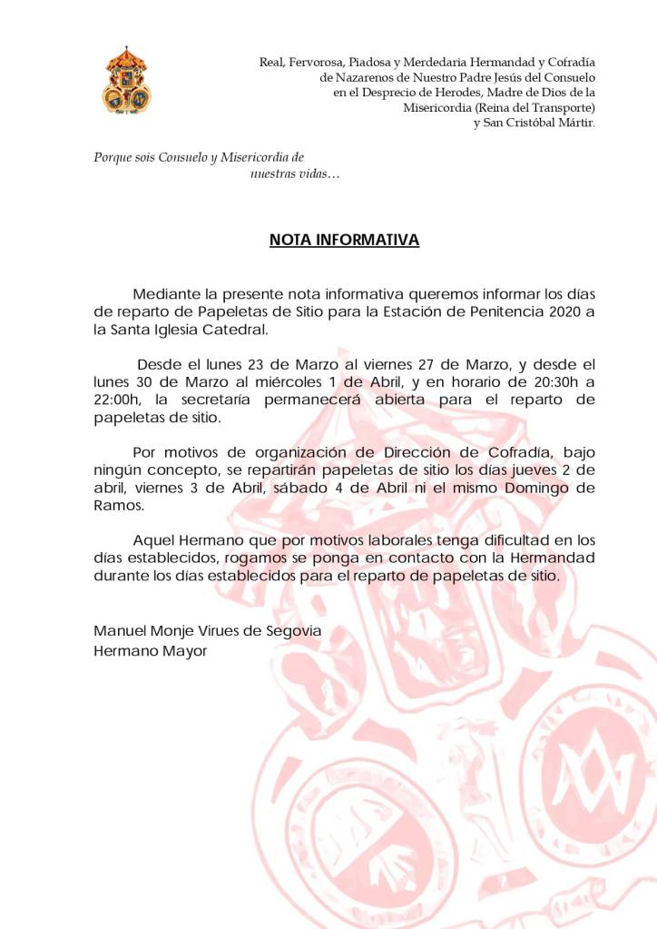 4 marzo, 20204 marzo, 2020 P.M. Las papeletas de sitio empezarán a repartirse el próximo 23 de marzo Comparte esto:Tweet Compartir en WhatsApp (Se abre en una ventana nueva) WhatsApp Compartir en Telegram (Se abre en una ventana nueva) Telegram Imprimir (Se abre en una ventana nueva) Imprimir Email a link to a friend (Se abre en una ventana nueva) Correo electrónico Me gusta Cargando... Relacionado