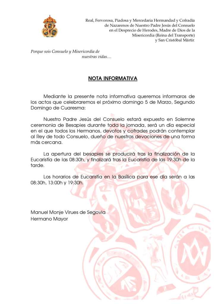 5 marzo, 2020 P.M. Segundo domingo de Cuaresma: Besapies al Señor del Consuelo Comparte esto:Tweet Compartir en WhatsApp (Se abre en una ventana nueva) WhatsApp Compartir en Telegram (Se abre en una ventana nueva) Telegram Imprimir (Se abre en una ventana nueva) Imprimir Email a link to a friend (Se abre en una ventana nueva) Correo electrónico Me gusta Cargando... Relacionado