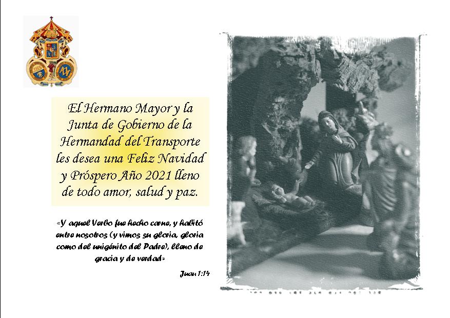 En nombre de nuestro Hermano Mayor y de su Junta de Gobierno desear a todos una Feliz Navidad y un Próspero Año 2021, lleno de todo amor, salud y paz.