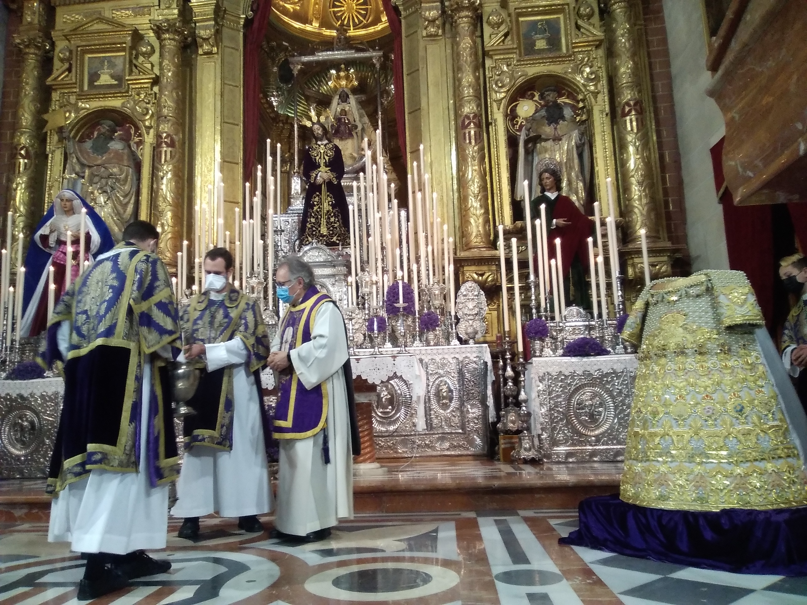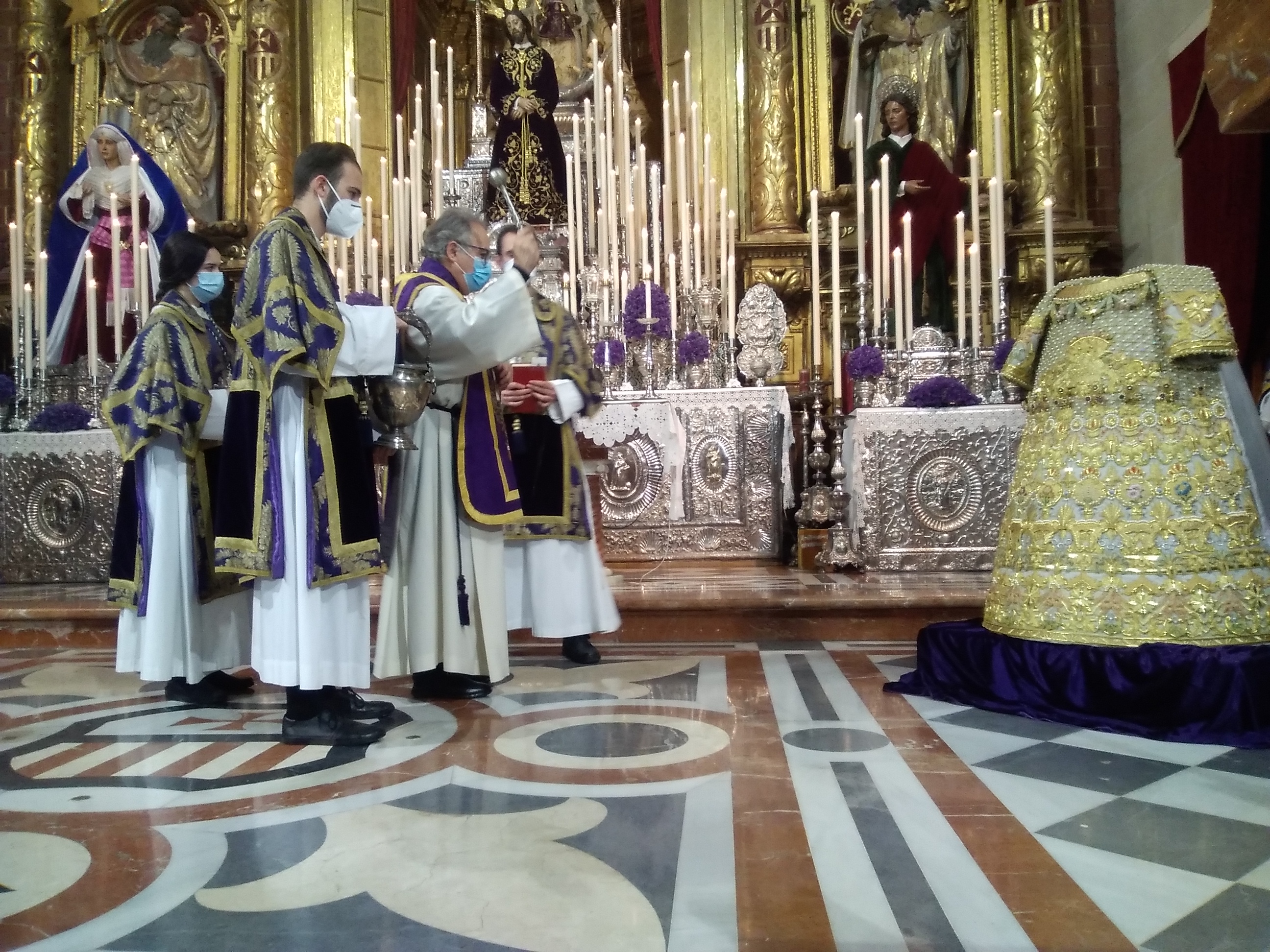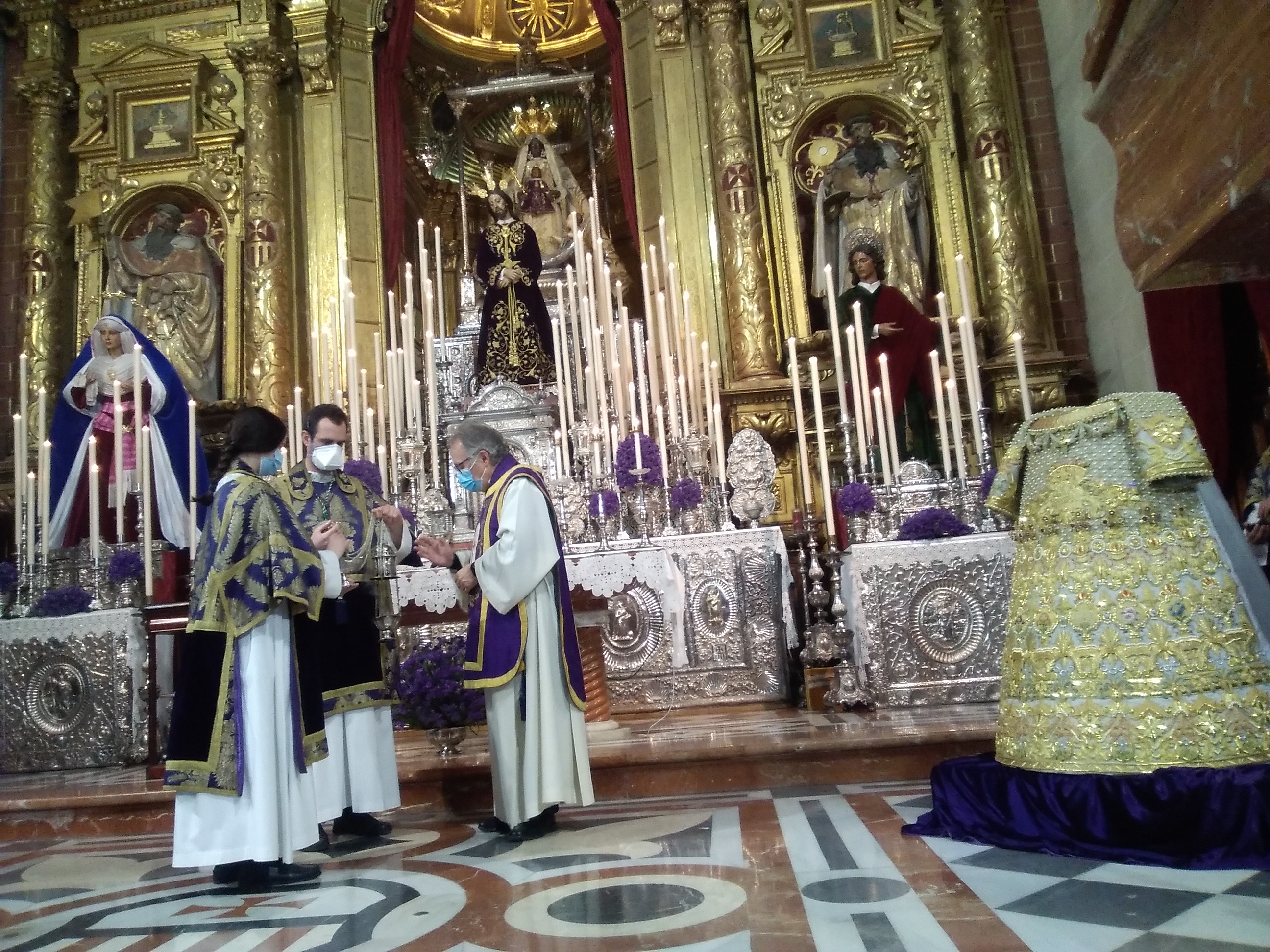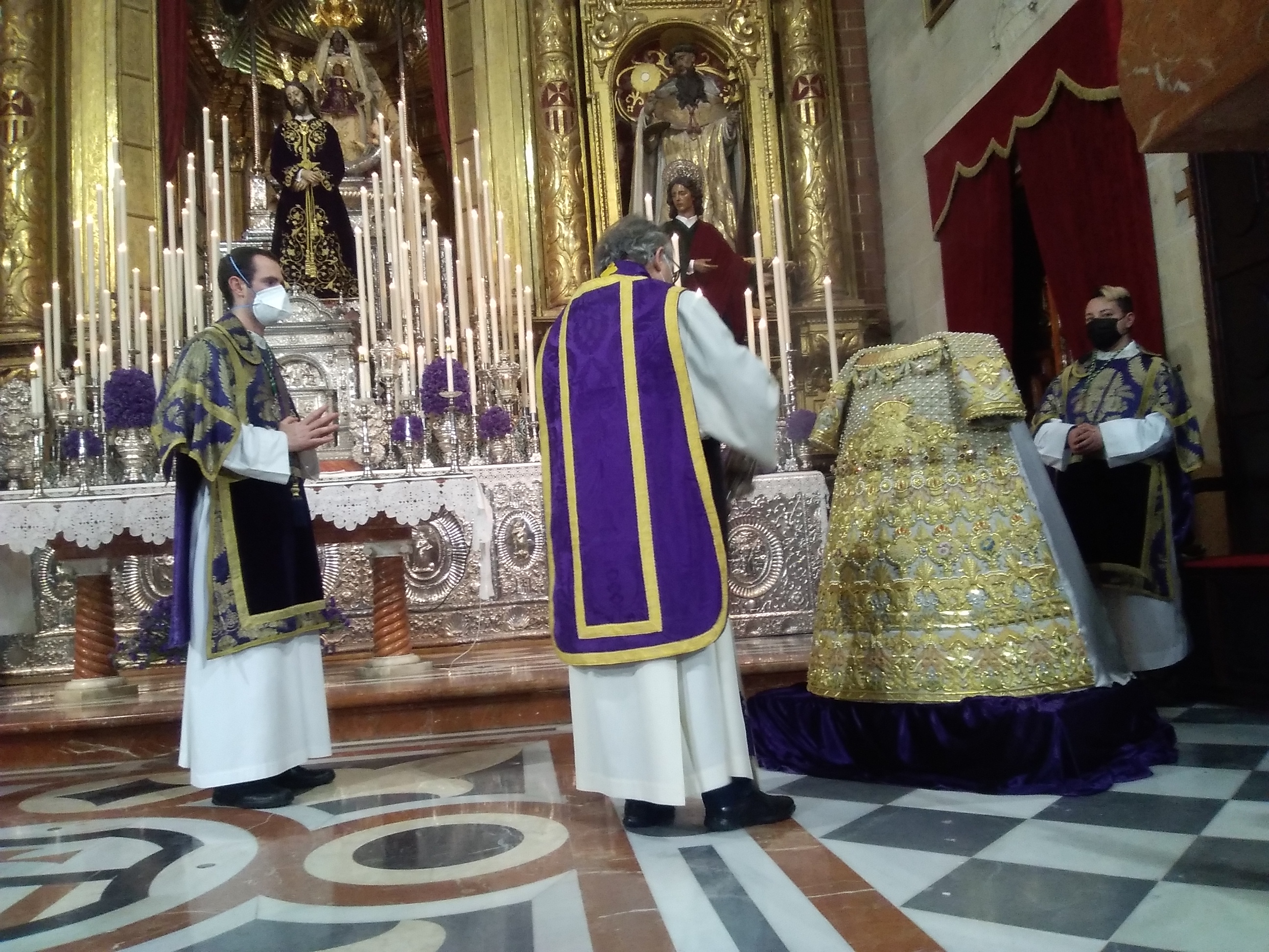 El pasado viernes 19 de Febrero y durante la Eucaristía del tercer día de Solemne Quinario a nuestras Sagradas Imágenes Titulares, se procedió por parte de nuestro Director Espiritual y Comendador de la Basílica de Nuestra Señora de la Merced, a la Bendición de la llamada «Saya de las Perlas», donación a nuestra Hermandad para Madre de Dios de la Misericordia.