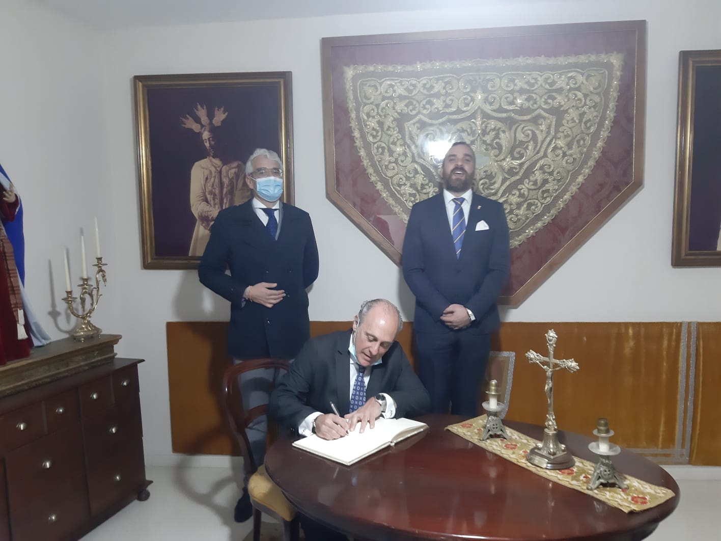 Una vez realizadas las protocolarias fotografías ante nuestros Sagrados Titulares, nos desplazamos hasta nuestra Casa de Hermandad, donde Pedro Pérez firmó en nuestro Libro de Honor.