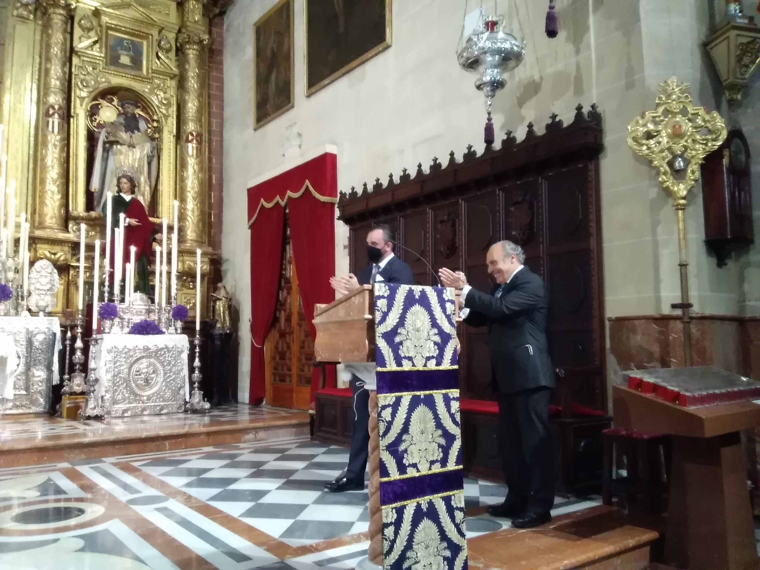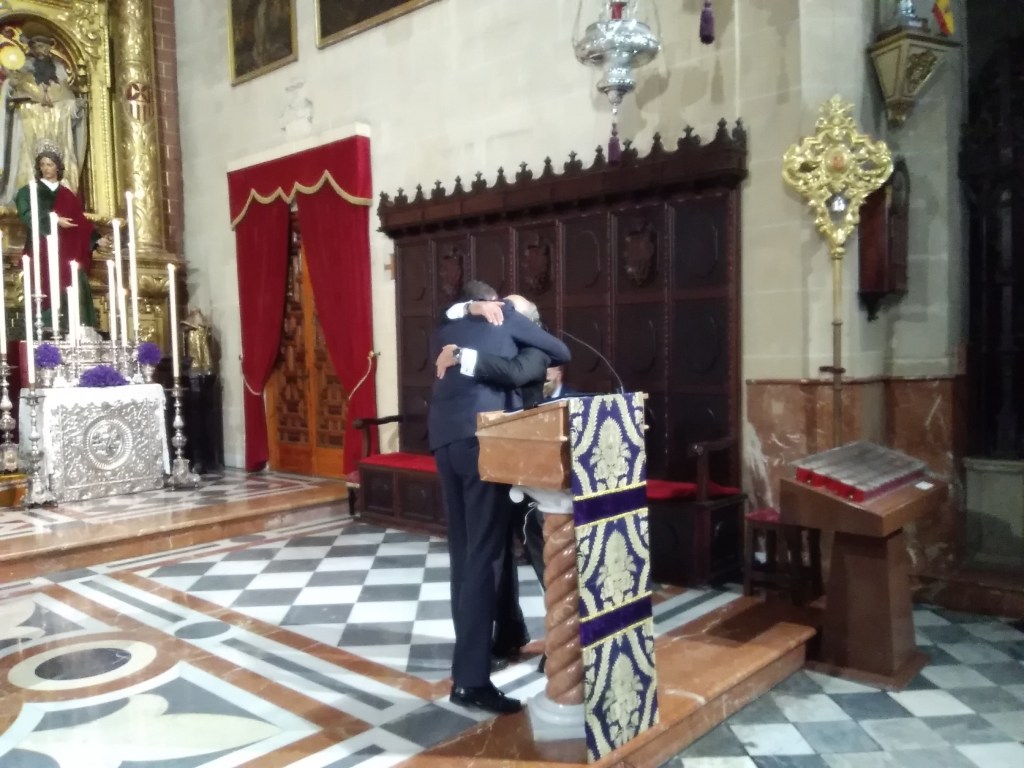Una vez terminada la Oración Poética, nuestro Hermano Mayor tomó la palabra agradeciendo tanto a Pedro como a su presentador los momentos vividos, haciendole entrega de un pequeño detalle en forma de atril.
