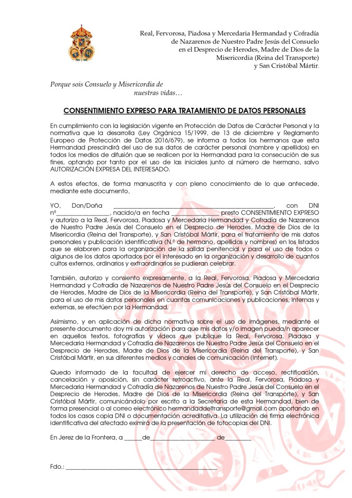 Rellena la solicitud de ingreso y el consentimiento para el tratamiento de datos que corresponda a tu edad y nos lo envías por email a hermandaddeltransporte@gmail.com