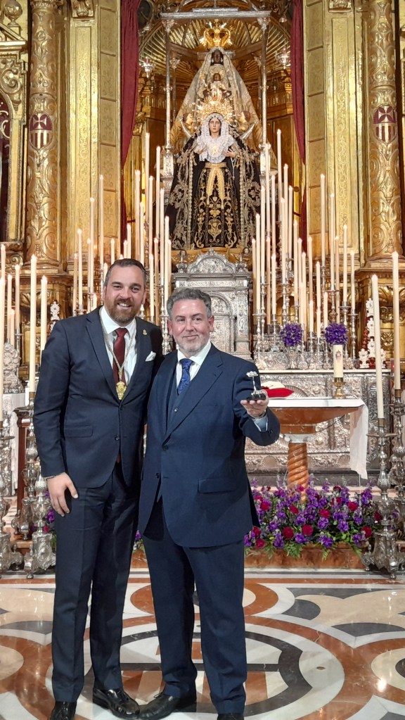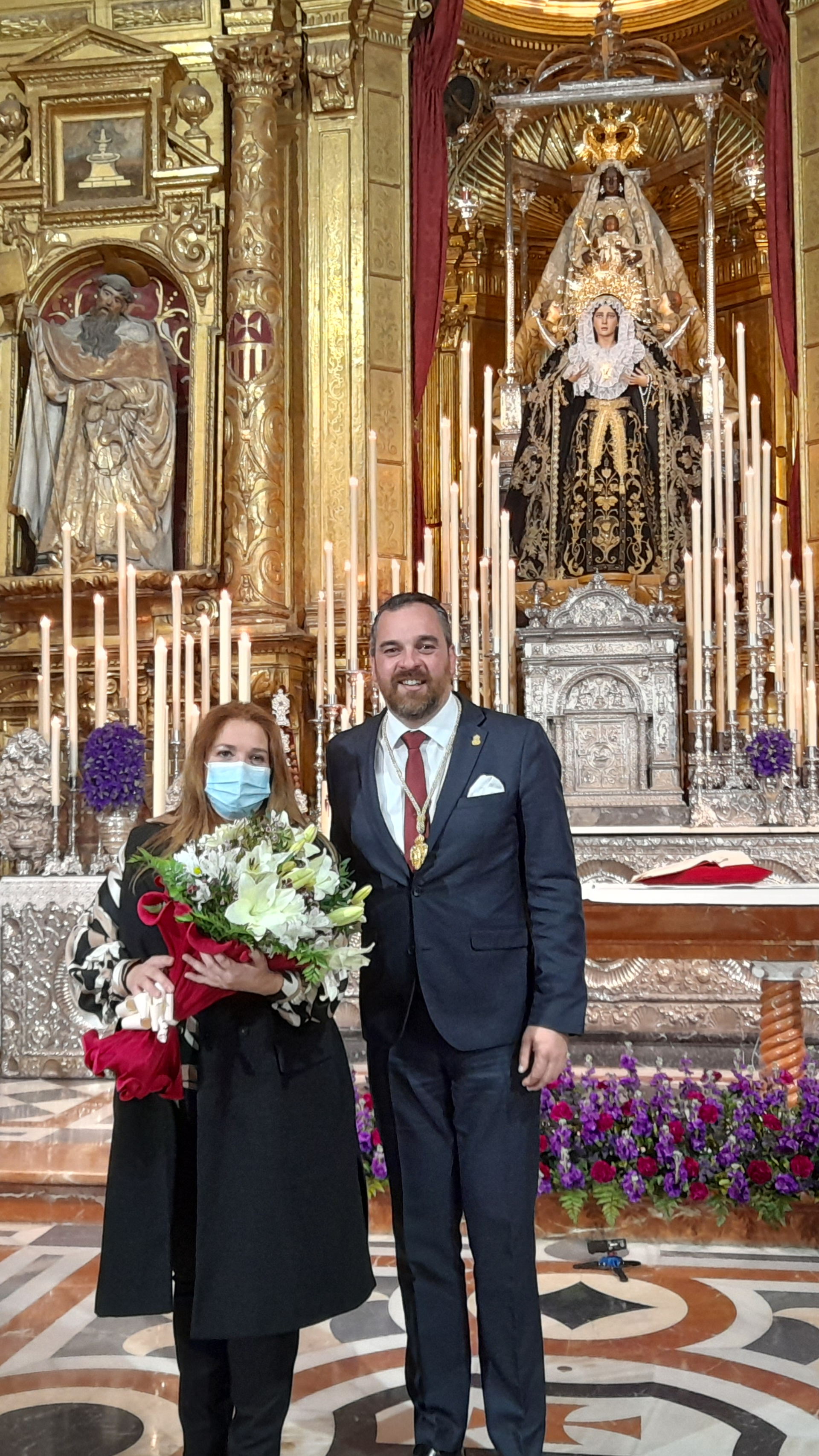 Una vez concluida la Oración Poética, nuestro Hermano Mayor entregó sendos recuerdos de agradecimiento a Juan Lara y Lucía Aliaño, por sus saetas.