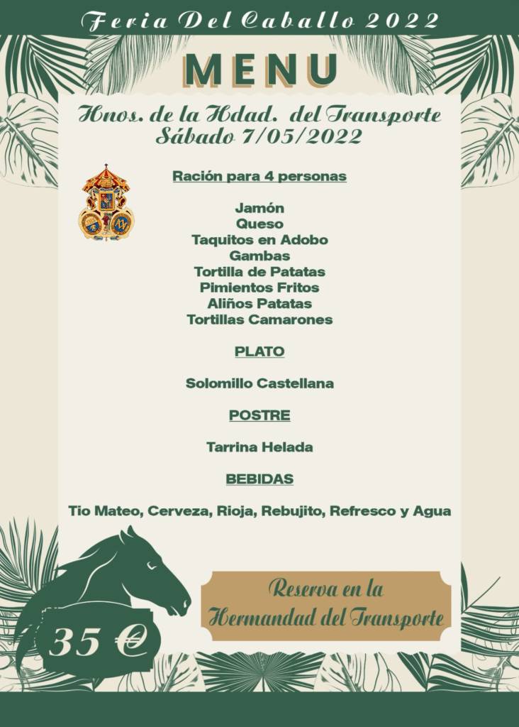 El motivo de la presente es informar de que el próximo sábado 7 de mayo, día del alumbrado, celebraremos en la Caseta de Feria de la Hermandad el tradicional almuerzo de feria.