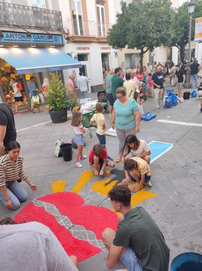 En la tarde noche del pasado sábado 18 de Junio, vísperas de la celebración del día del Corpus en nuestra Ciudad, los grupos joven e infantil de nuestra Hermandad se reunieron en la Calle Larga para la elaboración de una alfombra de sal.