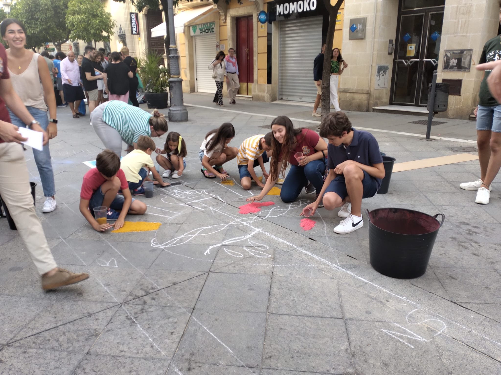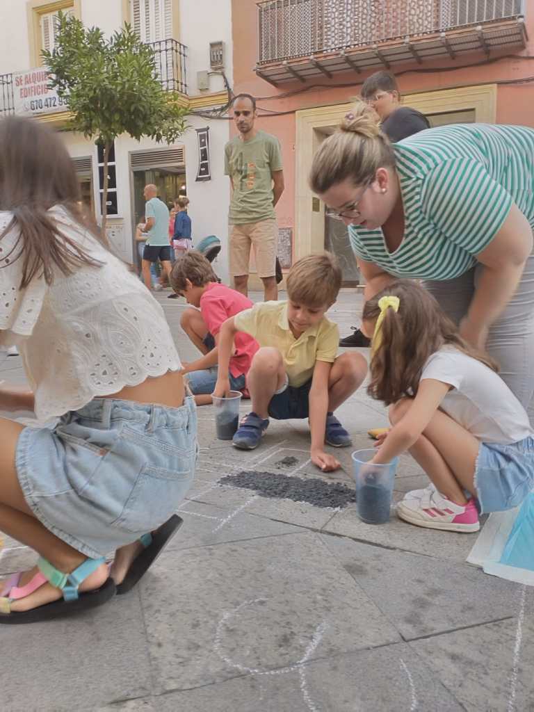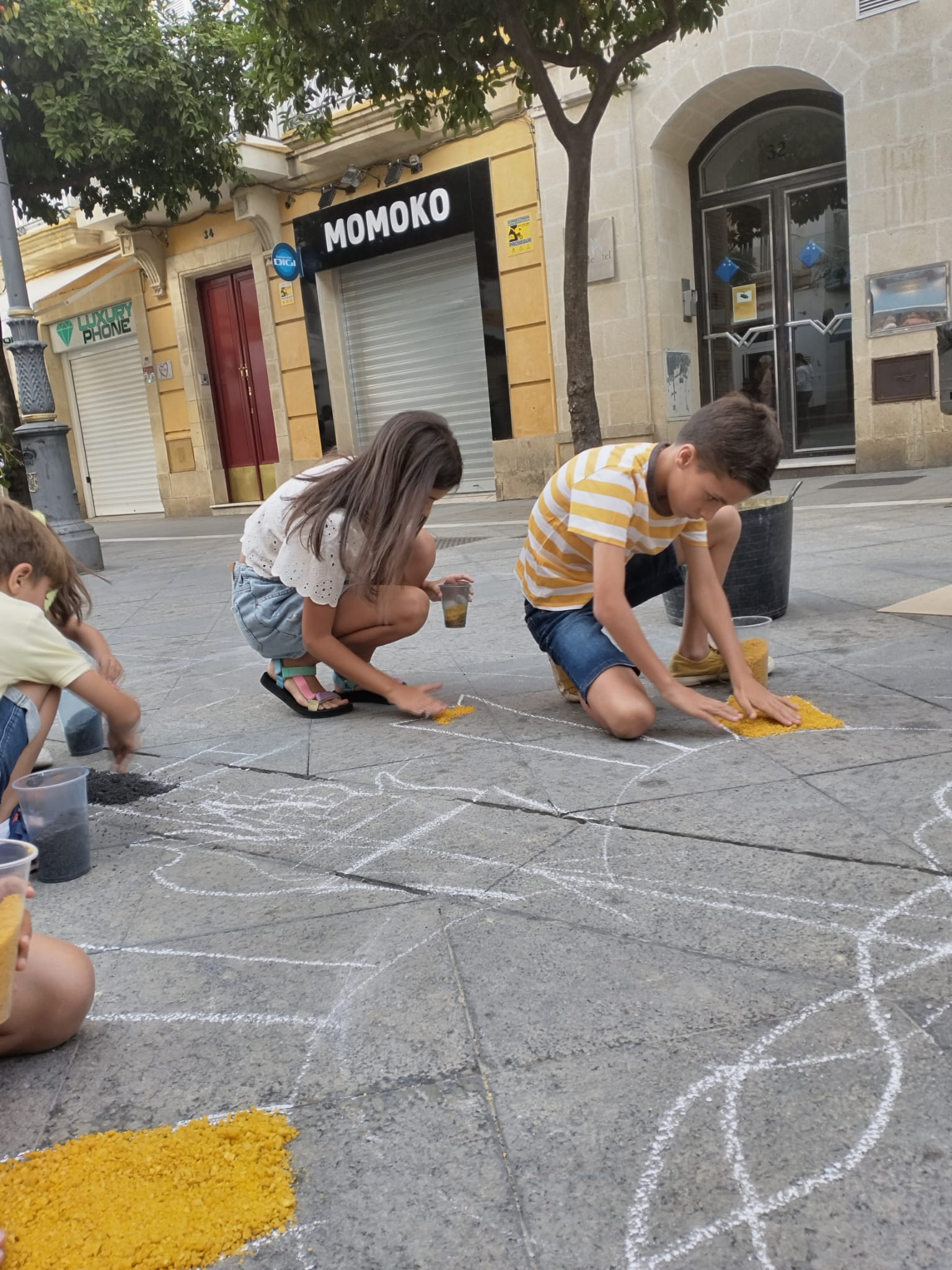 Fueron momentos donde niños, jóvenes, y no tan jóvenes, disfrutaron en torno a la figura de Jesús Sacramentado en la elaboración de una alfombra de sal para la Procesión del Santísimo Sacramento que se celebraría el día siguiente.