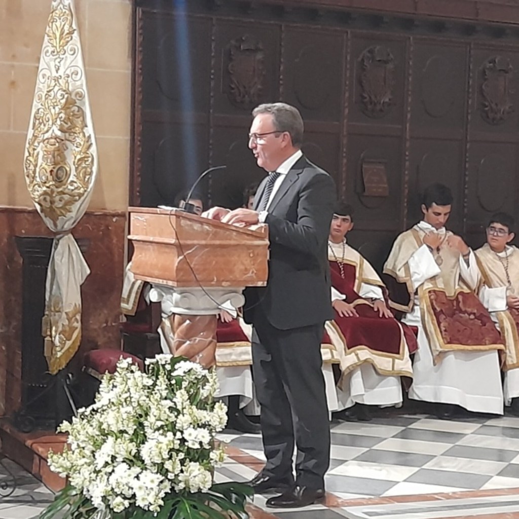 En el transcurso de la Eucaristía, comenzó el acto de la entrega del Volante de Oro, en el que nuestro Hermano Mayor agradeció al Presidente de la empresa galardona la aceptación de tan importante condecoración para nuestra Hermandad, a continuación el Secretario de la Orden procedió a la lectura del Acta del Volante de Oro de San Cristóbal 2023.