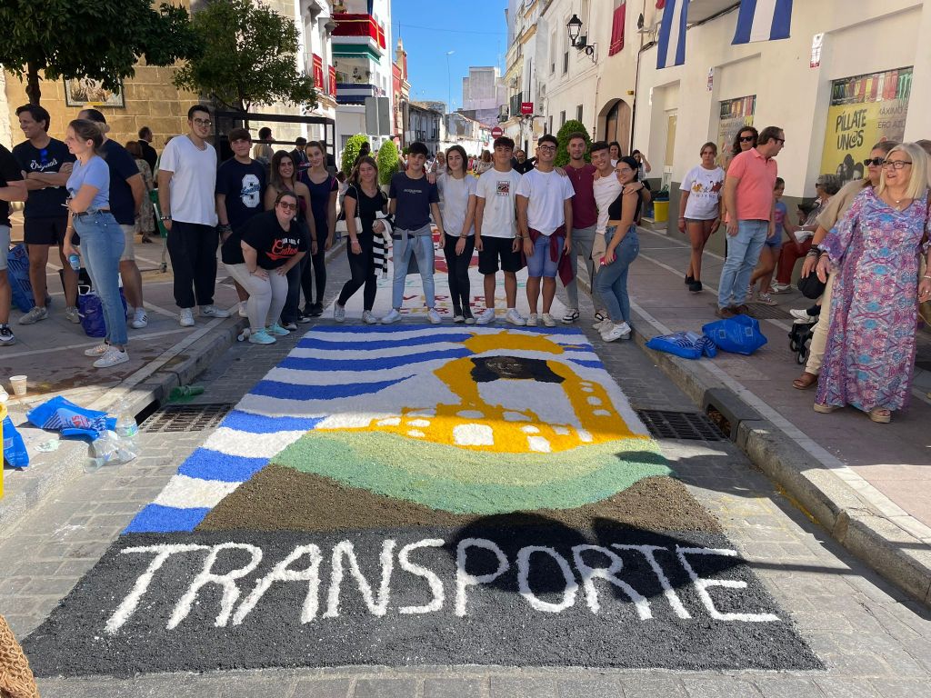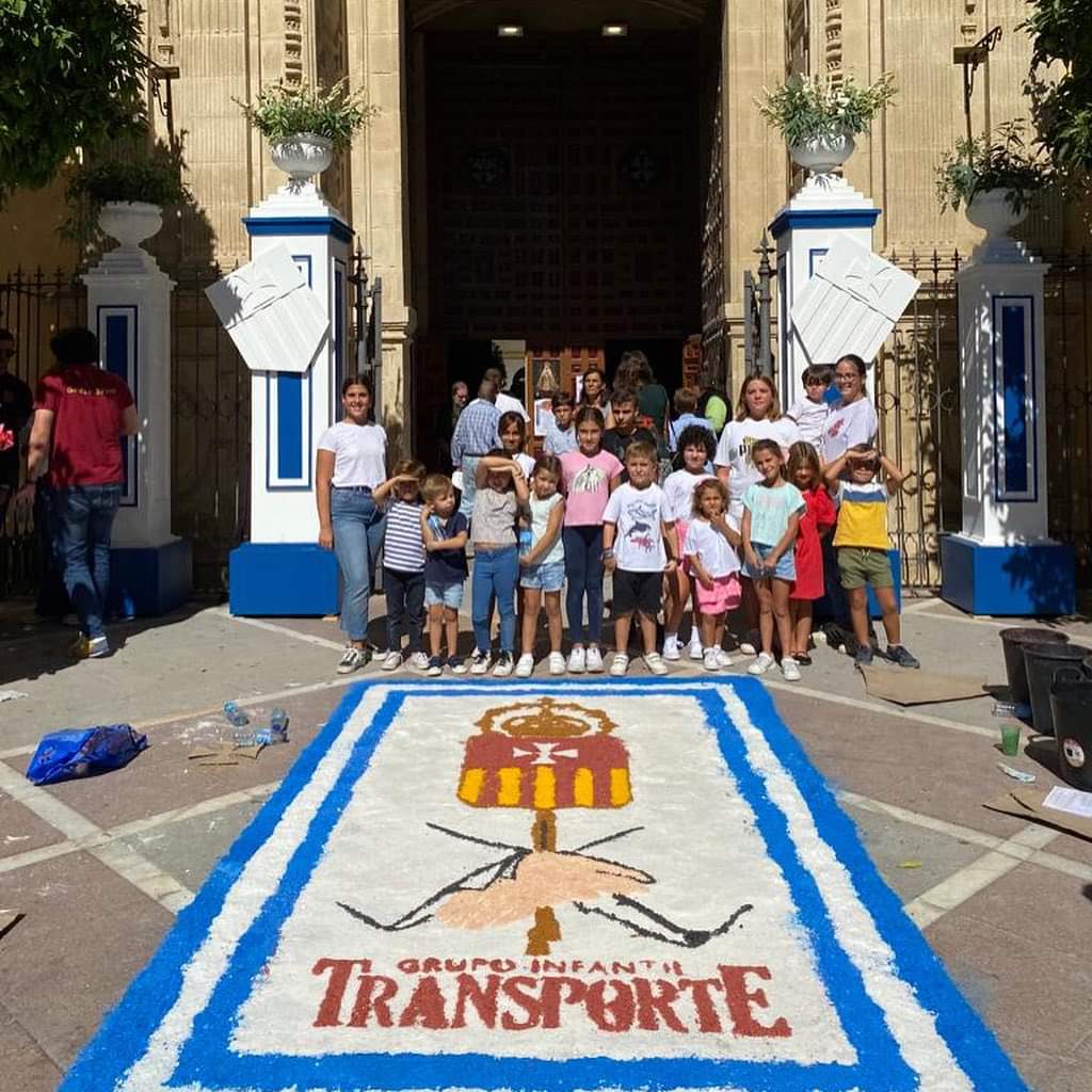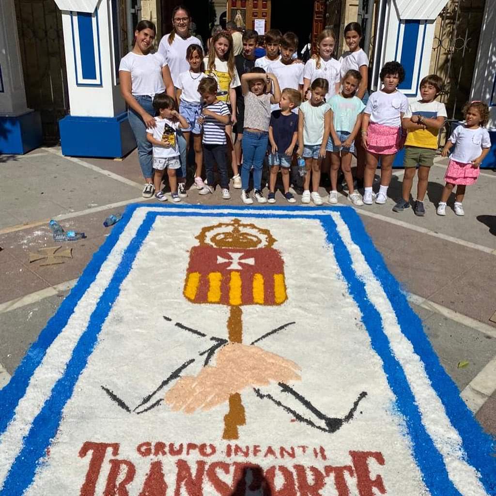 Los niños de nuestro Grupo Infantil han confeccionado su alfombra con motivos de las manos atadas del Señor del Consuelo, que recientemente ha sido designado como la imagen que presidirá el Vía Crucis de las Cofradías de Jerez.