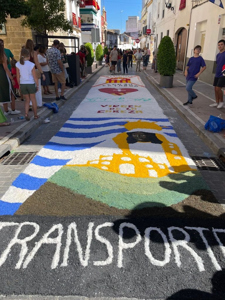 El Grupo Joven de nuestra Hermandad ha confeccionado su alfombra de sal con motivos de la Virgen de la Merced cubriendo con su manto de amor a la ciudad de Jerez de la Frontera.