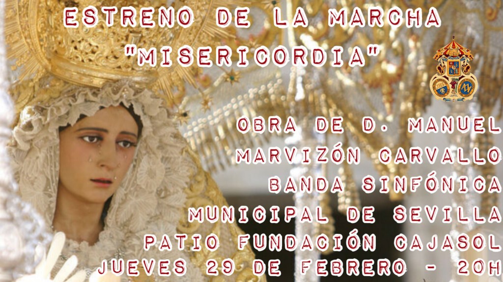 Tenemos la inmensa alegría de poder anunciar el estreno de la nueva marcha procesional dedicada a Madre de Dios de la Misericordia, Reina del Transporte, y que llevará como título»Misericordia».