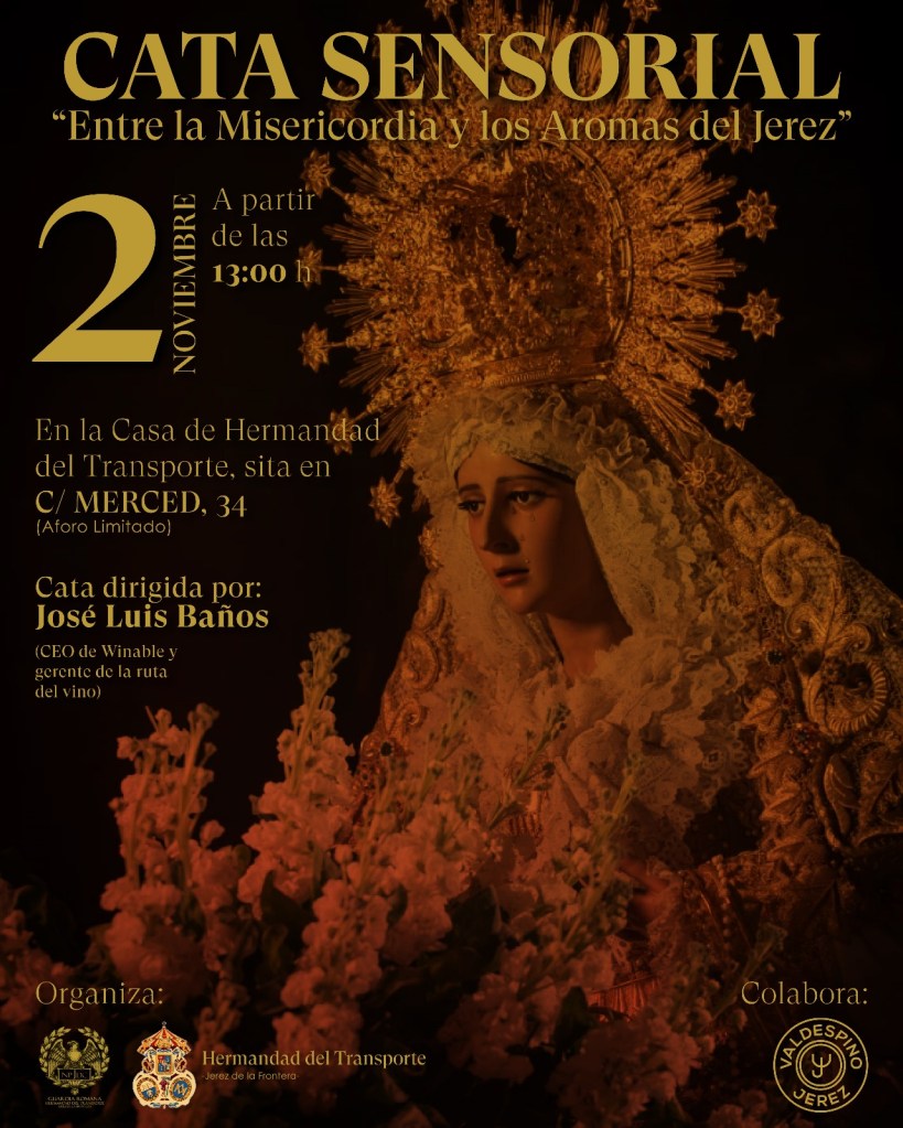 Bajo el título «Cata Sensorial: entre la Misericordia y los Aromas del Jerez», esta experiencia permitirá a los asistentes maridar el sentimiento y la esencia de un Domingo de Ramos con los sabores de los mejores vinos de Jerez.