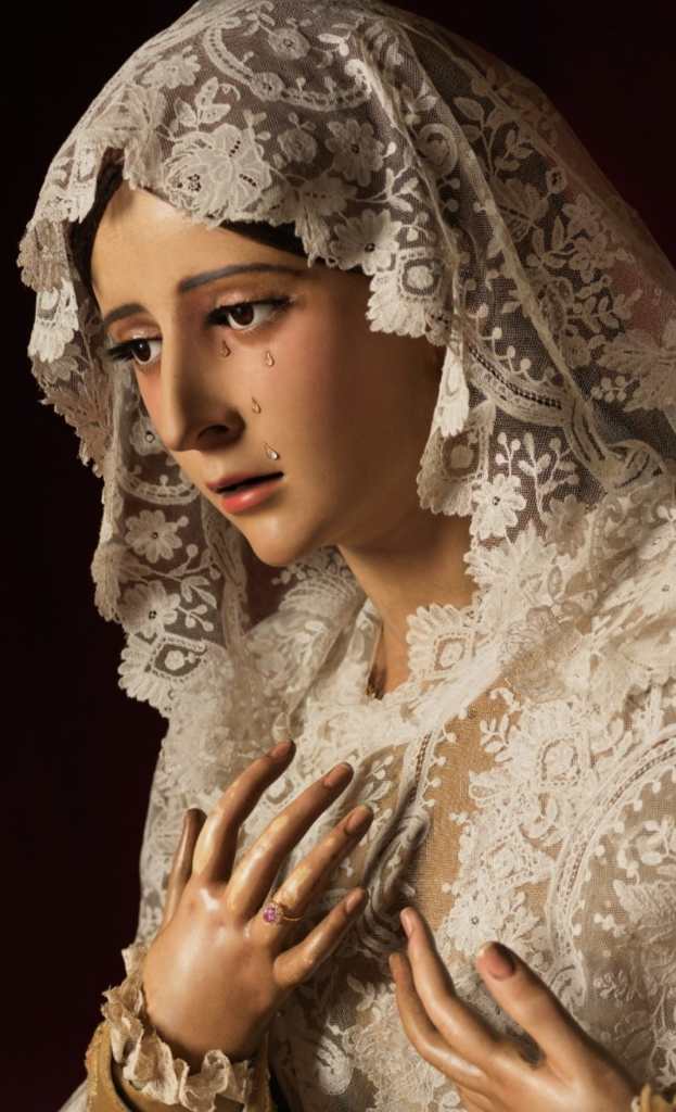 Madre de Dios de la Misericordia, por el dolor que sufriste en la sepultura de vuestro hijo Jesús, ayúdame y protégeme ante el tribunal de Dios.