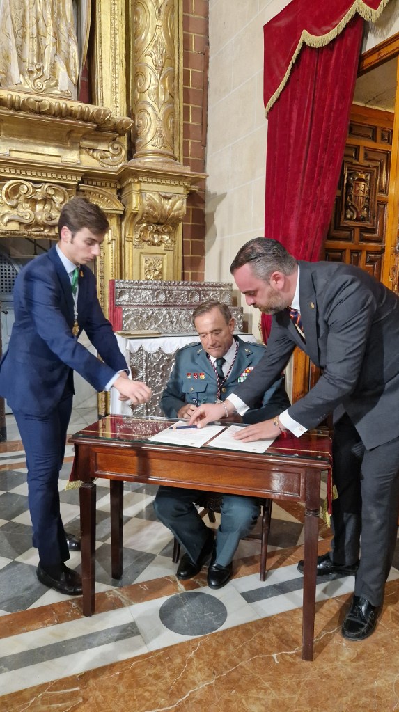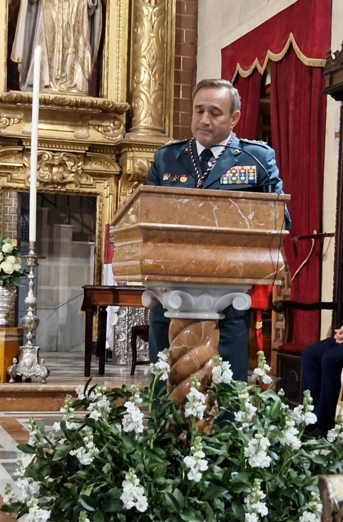 Comenzando con una breve descripción de detalles históricos de Madre de Dios de la Misericordia, nuestro Secretario dio paso al Teniente Coronel Don Esteban Gómez Naranjo, que acudió al acto en representación de la Comandancia de Cádiz, explicando el significado, historia y simbología de la faja del General.