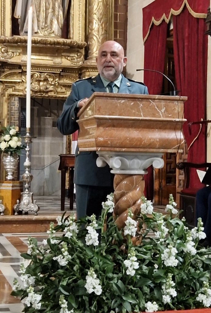 «Te ruego que acojas bajo tu manto a todos los fallecidos de la Guardia Civil, y de esta Hermandad, así como a todas las víctimas de las inundaciones en Valencia, Albacete y Málaga».