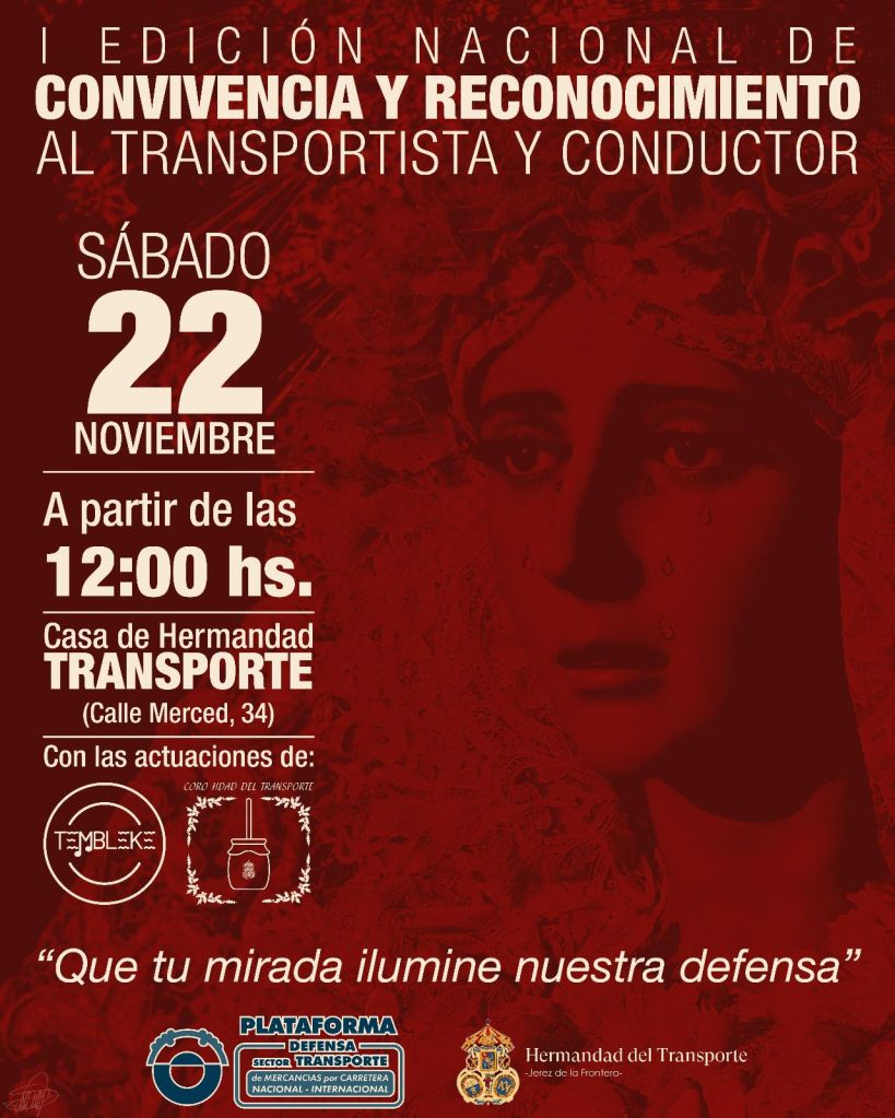 El próximo sábado 22 de noviembre, a partir de las 12:00 horas, nuestra Hermandad será sede de un evento sin precedentes: la Primera Edición de Reconocimiento a la figura del Transportista y Conductor, organizada por la Plataforma Defensa Sector del Transporte de España bajo el lema “Que tu mirada ilumine nuestra defensa”. Se trata de un encuentro de ámbito nacional e internacional, que ha elegido nuestra ciudad —y concretamente nuestra Hermandad— como punto de encuentro para homenajear a quienes cada día trabajan por las carreteras de España.