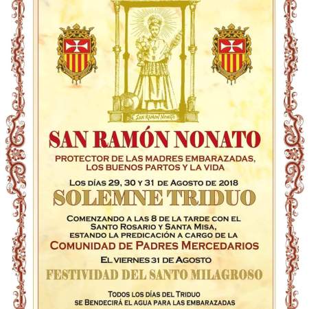 28 agosto, 201810 abril, 2019 P.M. Mañana comienza el Solemne Triduo a San Ramón Nonato en la Basílica