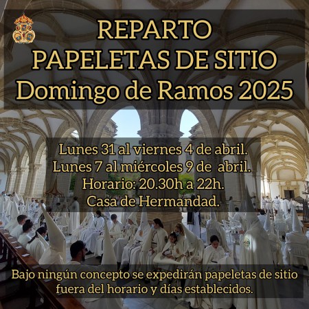 Reparto de Papeletas de Sitio Domingo de Ramos 2025 y pago Cuota Anual de Hermano