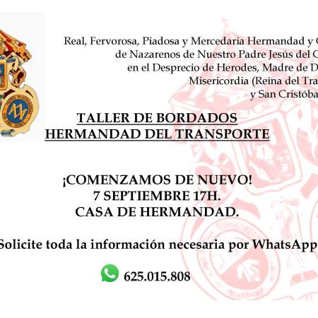 Comienzo del Taller de Bordados de nuestra Hermandad.