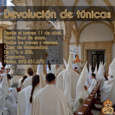 Las túnicas de nazareno podrán devolverse hasta final de mayo
